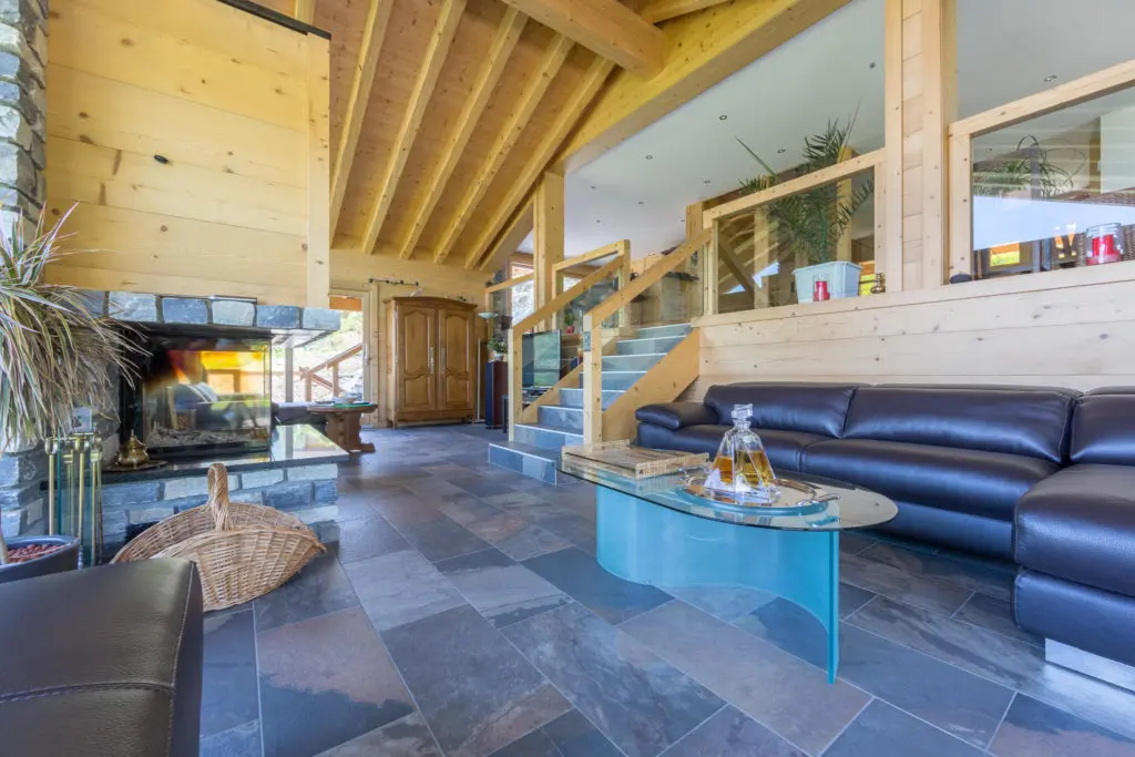 Le poids de la neige et celui de la finition du toit vont déterminer les sections utilisées sur une charpente. C’est la raison pour laquelle nous avons utilisé des chevrons massifs taillés à la hache et posée sur une double panne afin de supporter sans peine la neige à 1200 mètres et les pierres du toit.
