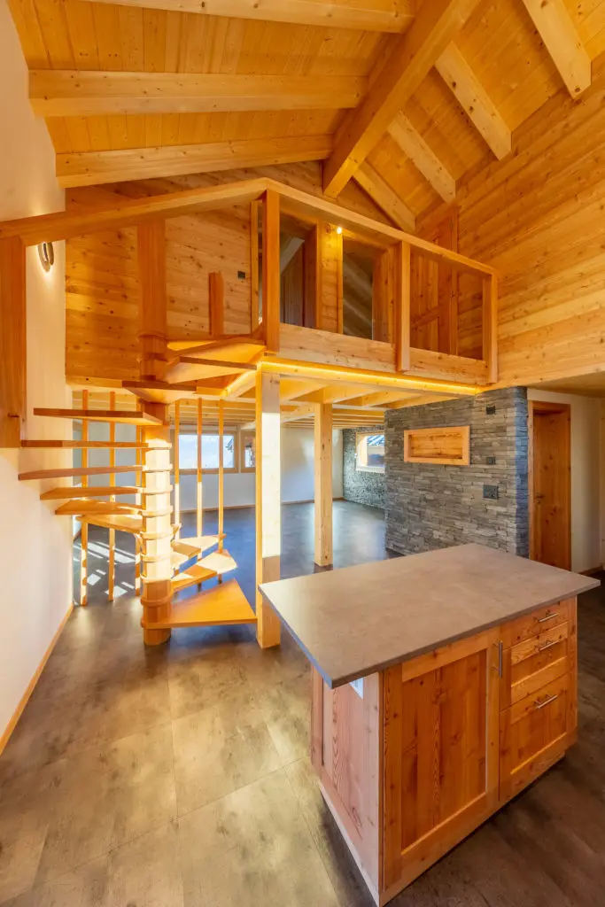 Rénovation totale d’une maison dans le vieux village de Haute-Nendaz. Un des challenges de ce projet a été le respect des normes incendie. Pour compenser le manque de distance entre les bâtiments, il a été requis de travailler sur le compartimentage coupe-feu du projet. Autrement dit, un feu dans le séjour principal ne doit pas se propager à l’ensemble des bâtiments comme dans le passé et ce grâce à l’utilisation de matériaux inertes comme des plaques de Fermacell.